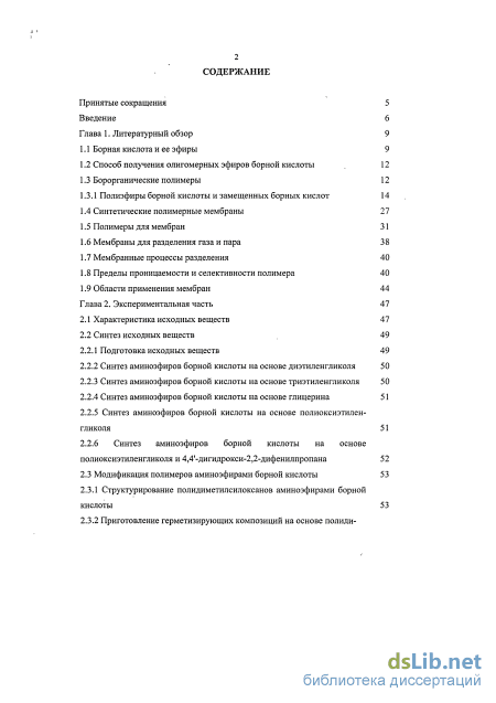 Общими свойствами полиэфиров борной и замещенных борных кислот являются их повышенная термостойкость, по сравнению с чисто органическими полиэфирами, и хорошая адгезия, но легкая гидролизуемость сильно снижает возможности их практического применения [31]. Менее подвержены гидролизу полиэфиры диборных кислот, и в случае введения в их состав координационно насыпающих атом бора групп, например, аминогрупп, могут быть использованы для получения пленок волокон и 1.4 Синтетические полимерные мембраны