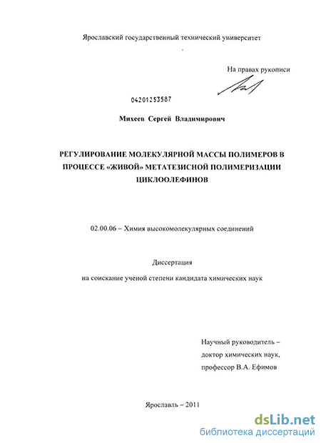 1 Метатезисная полимеризация и регулирование молекулярной массы полимеров (Литературный обзор)... 9