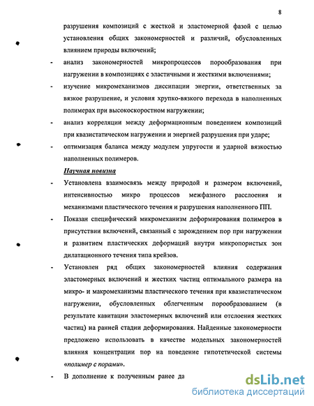 В то же время, расширение областей применения ПП в качестве конструкционного материала требует улучшения таких его свойств, как жесткость и сопротивление разрушению при низких температурах и ударных нагрузках. Традиционно повышения этих характеристик достигают, соответственно, модификацией полимера либо жестким, либо эластичным наполнителем. Как правило, улучшение одного из свойств сопряжено со снижением другого. Так, повышение ударопрочности ПП при введении эластомера сопровождается потерей жесткости; с другой стороны, повышение жесткости полимера за счет жесткого наполнителя часто сопровождается ухудшением его пластических свойств. В связи с этим исследование возможностей повышения ударной вязкости полимера за счет введения жесткого наполнителя и путей оптимизации баланса между энергией разрушения и модулем упругости наполненных полимеров является актуальной задачей, представляющей интерес как с практической, так и с научной точки зрения. Очевидно, что подход к решению такой задачи должен основываться на исследовании взаимосвязи структурной организации гетерогенных полимерных систем с микродеформационными процессами и макроскопическим механическим поведением.