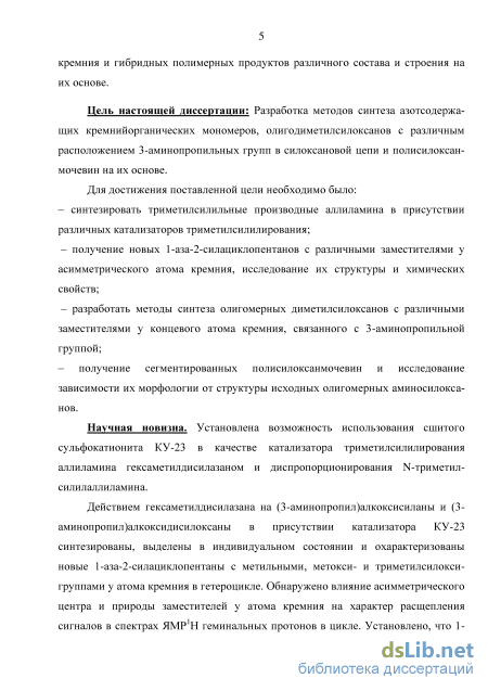 2.1 Синтез мономерных кремнийорганических аминов и 1-аза-2-силациклопентанов 63