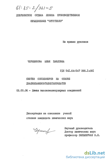 2.2. Получение полимеров,содержащих звенья NjN-диэтиламиноэтилметакрилата и метилметакрилата 84