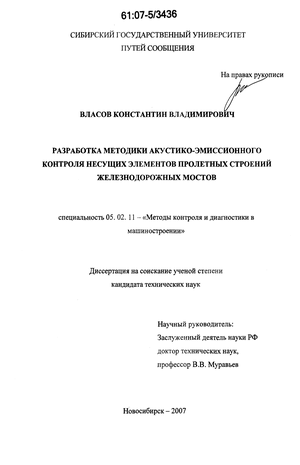 Настоящая работа выполнялась в соответствие с планом НИОКР МПС России 2000-2003гг., Программой научно-технического сотрудничества Сибирского государственного университета путей сообщения, СО РАН и Железными дорогами регионов Сибири, Дальнего востока по совершенствованию технических средств, при обеспечении снижения эксплуатационных расходов, Планом научно-исследовательских и опытно-конструкторских работ ОАО «РЖД» на 2005 год. (НИОКР: 7.8.02 «Разработка стенда для акустико-эмиссионного метода неразрушающего контроля и прогнозирования ресурса локомотива по перечню ЦТ»)