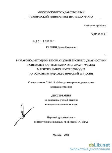 Апробация работы. Основные результаты работы докладывались на XV , XVI, XVII Международной конференции "Современные методы и средства НК и ТД" (г. Ялта, 2007, 2008, 2009 г.г.), XXVII и XXIX тематическом семинаре «Диагностика оборудования и трубопроводов компрессорных станций» (пос. Небуг, 2008, 2010 г.г.), V-ой Евразийской научно-практической конференции "Прочность неоднородных структур ПРОСТ-2010" (г. Москва, 2010 г.), II научно-технической конференции «Диагностика технического состояния оборудования и сооружений в технологических системах добычи, подготовки и трубопроводного транспорта нефти и газа» (г. Москва, 2010 г.), на научных семинарах кафедры "Технологии сварки и диагностики" МГТУ им. Н.Э. Баумана.