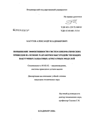 Цель диссертационной работы. Повышение быстродействия систем пневматических приводов посредством разработки высокоскоростных вакуумных захватных модулей.
