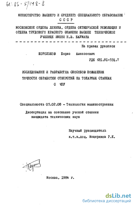 В настоящее время наиболее изучены вопросы обеспечения точности, размера и. формы в продольном сечении. Технологические методы обеспечения заданных точности, формы в поперечном сечении и отклонения расположения, требования к которым постоянно растут в связи с повышением быстроходности и надежности машин, изучены недостаточно. Поэтому исследования направленные на разработку новых и совершенствование существующих способов повышения точности, обработки отверстия на токарных станках с ЧПУ являются актуальными.