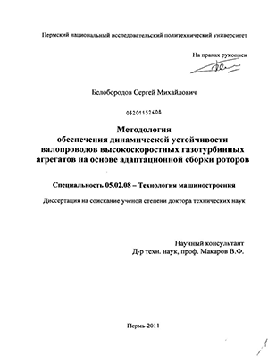 Научная новизна. Разработаны теоретические основы обеспечения динамической устойчивости высокоскоростных газотурбинных агрегатов на основе применения методологии адаптационной сборки роторов и валопроводов, включающей в себя методы подготовки, осуществления и коррекции результатов сборки.