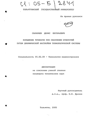 Апробация работы. Установка для сверления выставлялась на Международном форуме «ПромЭКСПО-2004», ВВЦ, г. Москва, автор награжден медалью «Лауреат ВВЦ». Автором опубликовано 6 печатных работ. Основные положения, выводы и результаты диссертационной работы докладывались на научных семинарах кафедры «Технология машиностроения» ТГУ, конференциях: «Высокие технологии в машиностроении», Самара, 2002, Пенза, 2003; «Автоматизация технологических процессов в машиностроении», Волгоград, 2003; «Теплофизические и технологические аспекты управления качеством в машиностроении», Тольятти, 2005.