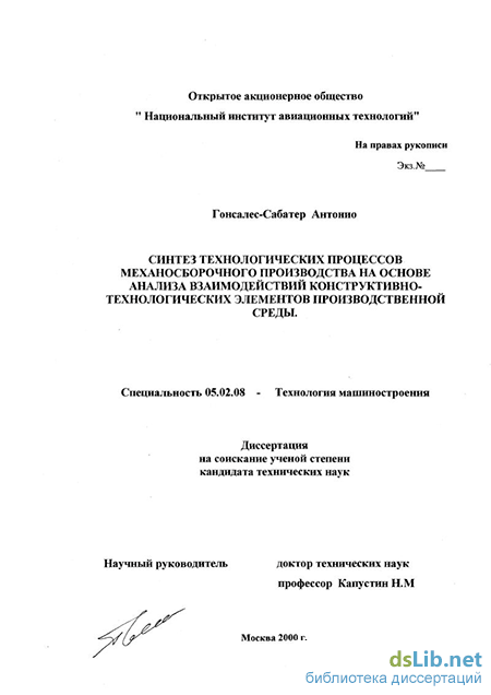 Гонсалес-Сабатер Антонио. Синтез технологических процессов механосборочного производства на основе анализа взаимодействий конструктивно-технологических элементов производственной среды : диссертация ... кандидата технических наук : 05.02.08.- Москва, 2000.- 144 с.: ил. РГБ ОД, 61 01-5/191-1