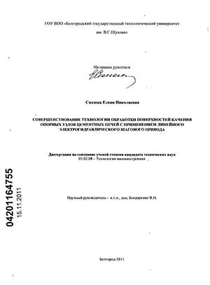 Практическая значимость работы: разработаны положения для реализации технологии обработки поверхностей качения опорных узлов цементных печей с использованием ПУ, активного контроля и оригинального линейного электрогидравлического шагового привода, предложены конструкции отдельных модулей встраиваемого станка, сокращающие время обработки.