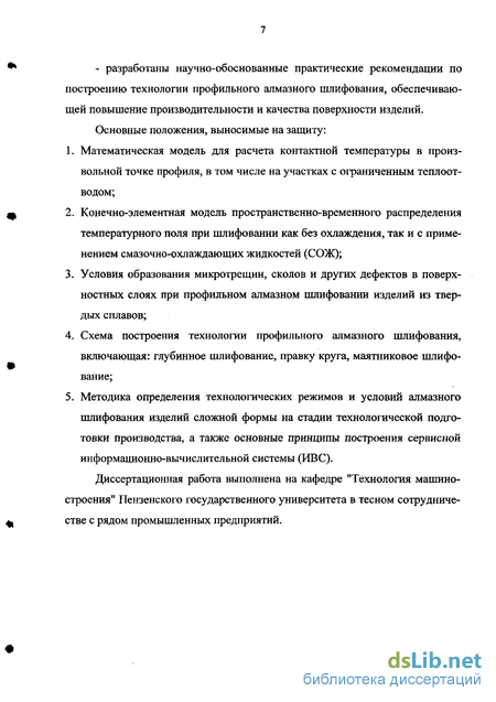 3. Изучено состояние поверхностных слоев шлифуемых изделий. Установлено, что предельная температура, при которой образуются шлифовочные трещины при обработке изделий из твердых сплавов различных марок не должна превышать 400С. 5 Практические рекомендации по обеспечению качества изделий при профильном алмазном шлифовании