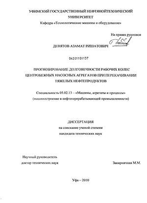6 Разработка методики по оценке долговечности рабочих колес с учетом условий и режима эксплуатации ЦНА при перекачивании тяжелых нефтепродуктов.