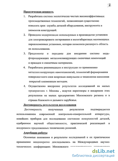 использованием современной контрольно-измерительной аппаратуры, новейших приборов для исследования состояния поверхностей деталей, одобрением научной общественности, практической реализацией и внедрением предложенных технических решений. Апробация работы