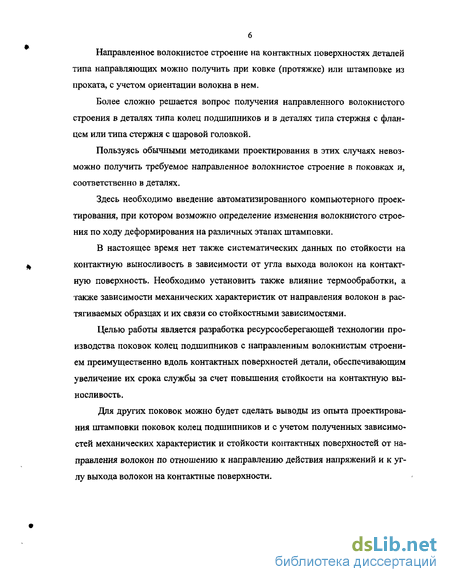 Целью работы является разработка ресурсосберегающей технологии производства поковок колец подшипников с направленным волокнистым строением преимущественно вдоль контактных поверхностей детали, обеспечивающим увеличение их срока службы за счет повышения стойкости на контактную выносливость.
