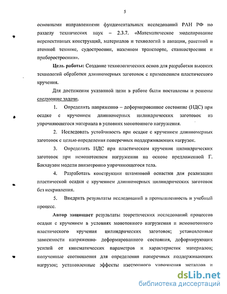 Автор защищает результаты теоретических исследований процессов осадки с кручением в условиях монотонного нагружсния и немонотонного пластического кручения цилиндрических заготовок; установленные зависимости напряженно- деформированного состояния, деформирующих усилий от кинематических параметров и характеристик материалов; полученные соотношения для определения поперечных поддерживающих нагрузок; установленные эффекты изотропного упрочнения металлов и