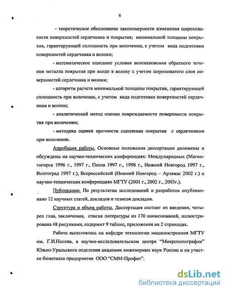 Апробация работы. Основные положения диссертации доложены и обсуждены на научно-технических конференциях: Международных (Магнитогорск 1996 г., 1997 г., Пенза 1997 г., 1998 г., Нижний Новгород 1997 г., Волгоград 1997 г.), Всероссийской (Нижний Новгород - Арзамас 2002 г.) и научно-технических конференциях МГТУ (2001 г., 2002 г., 2003г.), а также на расширенном заседании кафедры технологии машиностроения.