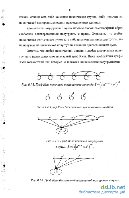 Заметим, что любая циклическая полугруппа допускает планарный граф Кэли. Например, конечная циклическая полугруппа типа (г, т), заданная копредставлением la аг+т=аҐ), имеет в качестве графа Кэли граф, изображенный нарис. 0.1.1; бесконечная циклическая полугруппа имеет граф Кэли, изображенный на рис. 0.1.2.