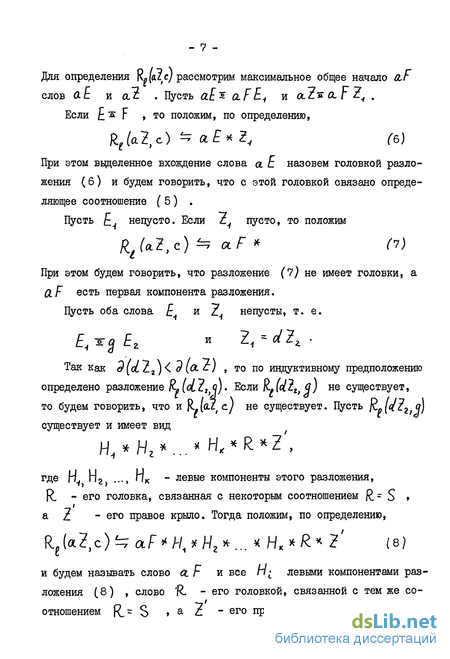 При этом вццеленное вхождение слова a назовем головкой разложения (б) и будем говорить, что с этой головкой связано определяющее соотношение ( 5) .