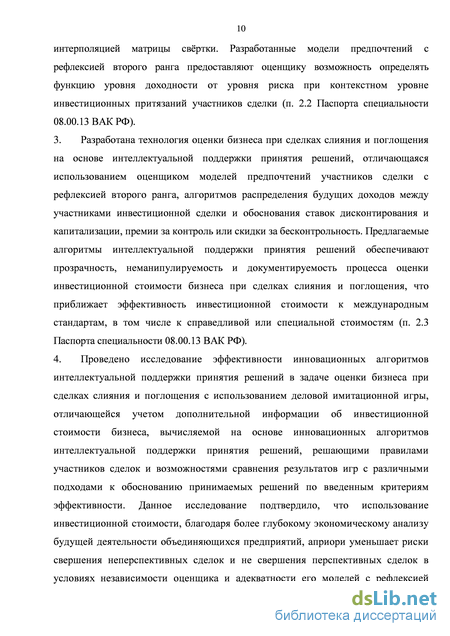 2.2 Разработка и исследование моделей предпочтений участников сделок слияния и поглощения 63