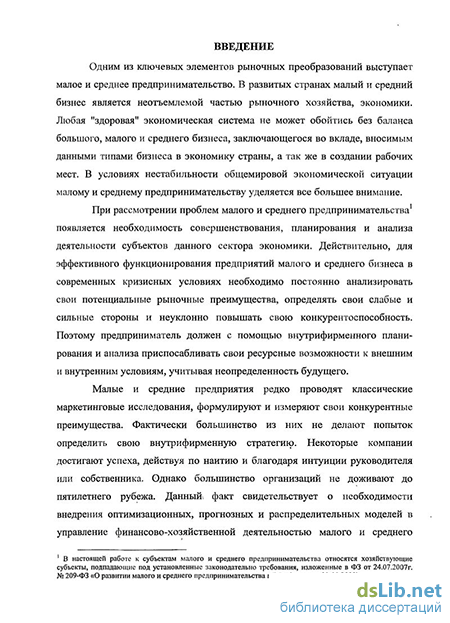 При рассмотрении проблем малого и среднего предпринимательства появляется необходимость совершенствования, планирования и анализа деятельности субъектов данного сектора экономики. Действительно, для эффективного функционирования предприятий малого и среднего бизнеса в современных кризисных условиях необходимо постоянно анализировать свои потенциальные рыночные преимущества, определять свои слабые и сильные стороны и неуклонно повышать свою конкурентоспособность. Поэтому предприниматель должен с помощью внутрифирменного планирования и анализа приспосабливать свои ресурсные возможности к внешним и внутренним условиям, учитывая неопределенность будущего.