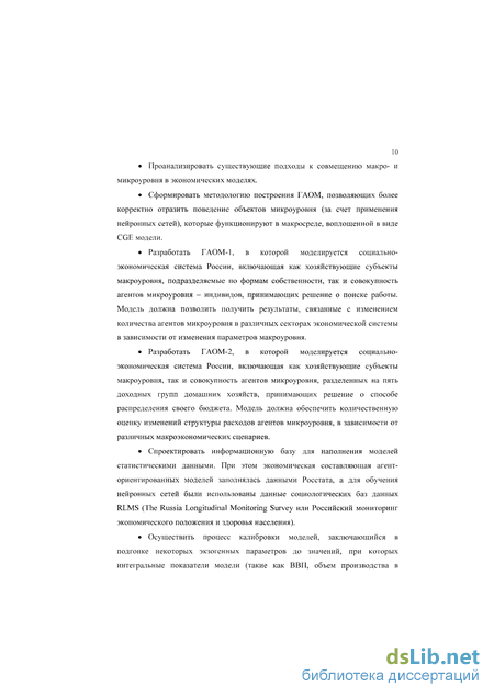 Далее рассматривается одна из актуальных на сегодняшний день задач, сформулированная, в том числе авторитетными зарубежными научными центрами – задача разработка гибрида АОМ и вычислимой модели общего равновесия. После анализа имеющегося опыта, описывается методологический подход к решению данной проблемы, на основе которого были разработаны описываемые в диссертации модели.