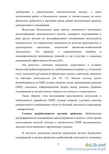 Проблематика внутрифирменного планирования, прогнозирования и анализа с точки зрения использования моделей, методов и инструментов СППР рассматривалась многими отечественными и зарубежными учеными.