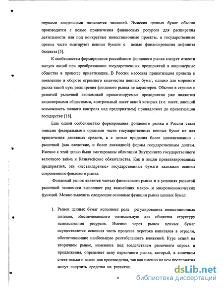 К особенностям формирования российского фондового рынка следует отнести выпуск акций при преобразовании государственных предприятий в акционерные общества в процессе приватизации. В России массовая приватизация привела к появлению в обороте огромного количества ценных бумаг, однако для мирового рьшка такой путь расширения фондового рынка не характерен. Обычно в странах с развитой рыночной экономикой приватизируемые предприятия уже являются акционерными обществами, контрольный пакет акций которых (т.е. пакет, дающий возможность полного контроля над предприятием) принадлежал до приватизации государству [18].