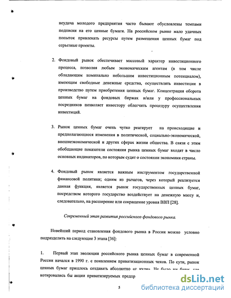Современный этап развитая российского фондового рынка.