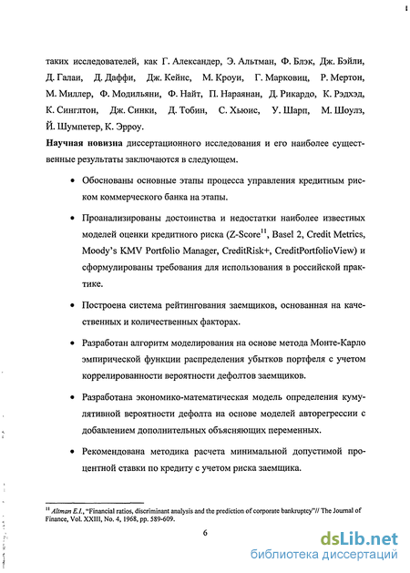 Информационную базу исследования составили законодательные и нормативные акты РФ и Европы по вопросам, связанным с оценкой и кредитным риском, материалы официальной статистики, результаты исследований российских и зарубежных ученых, Интернет-ресурсы и сведения по проблематике диссертации, опубликованные в СМИ. Теоретическую и методологическую основу исследования составляют методологические принципы, изложенные в трудах российских и зарубежных ученых, а также отраженные в законодательстве РФ. В работе автор опирался на труды российских ученых А.П. Альгина, И.Т. Балабанова, И.А. Бланка, А.В. Воронцовского, В.А. Гамза, А.А. Емельянова, О.И. Лаврушина, А.А. Лобанова, A.M. Карминского, B.C. Кромонова, В.И. Малыхина, А.А. Пересецкого, М.В.Помазанова, М.А. Рогова, В.Т. Севрука, Л.Н. Тэпмана, Н.В. Хохлова, Е.Ю. Хрусталева, А.В. Чугунова, А.С. Шапкина, А.Н. Ширяева и многих других. Из зарубежных авторов использованы труды таких исследователей, как Г. Александер, Э. Альтман, Ф. Блэк, Дж. Бэйли, Д. Галаи, Д. Даффи, Дж. Кейнс, М. Кроуи, Г. Марковиц, Р. Мертон, М. Миллер, Ф. Модильяни, Ф. Найт, П. Нараянан, Д. Рикардо, К. Рэдхэд, К. Синглтон, Дж. Синки, Д. Тобин, С. Хьюис, У. Шарп, М. Шоулз, И. Шумпетер, К. Эрроу.