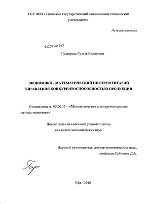 Цель диссертационной работы: формирование экономико-математического инструментария управления конкурентоспособностью продукции предприятий, производящих товары народного потребления.