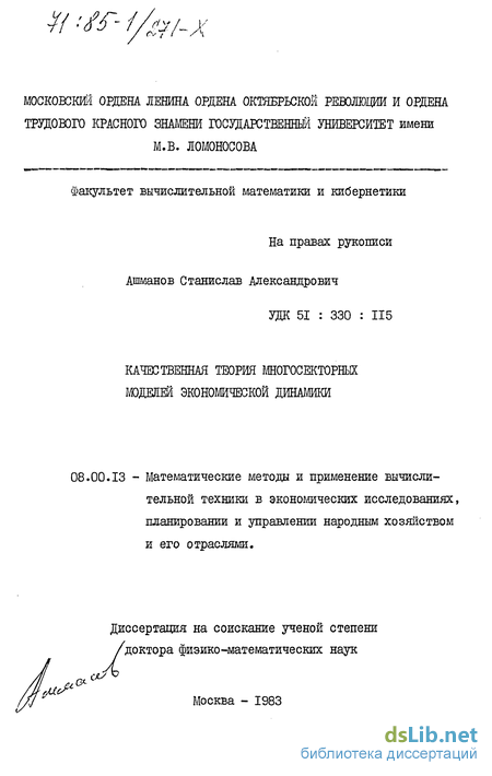 Данная работа посвящена качественной теории многосекторных моделей экономической динамики. Побудительным мотивом для получения значительной части излагаемых результатов послужила деятельность автора по изучению конкретной отрасли народного хозяйства - системы материально-технического снабжения и ее влияния на основное производство. Исследования по этой проблеме систематически ведутся на кафедре математических методов анализа экономики экономического факультета МГУ под научным руководством чл.-корр. АН СССР С.С.Шаталина и доцента, кандидата экономических наук И.В.Нита. Автор в течение долгого времени сотрудничал с И.В.Нитом и коллективом хоздоговорной группы упомянутой кафедры в качестве консультанта по математическим вопросам моделирования и анализа экономических моделей. Целью такого сотрудничества было построение формальной экономико-математической модели, которая, будучи насыщена конкретной статистической информацией, позволила бы оценить вклад системы материально-технического снабжения в создание валового национального продукта. Понятно, что правильная оценка деятельности столь глобальной по своим масштабам отрасли народного хозяйства, как система материального снабжения, является важнейшей народнохозяйственной проблемой. От решения этого вопроса зависит определение наилучших пропорций развития основного производства и системы маттехснаба, определение перспективных путей развития этой отрасли и в конечном счете, повышения эффективности всего общественного производства.
