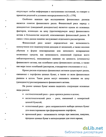 • проведение анализа существующих моделей и методов оценки риска финансовых активов;