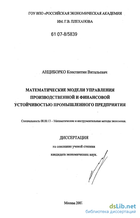 Цель исследования - совершенствование теоретических подходов и разработка экономико-математических методов и математических моделей оценки производственной и финансовой устойчивости и управления развитием промышленного предприятия в нестабильной рыночной среде.