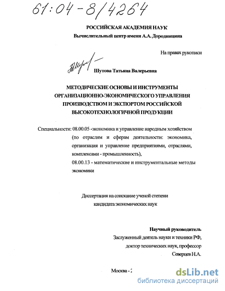 представлены предпосылки создания и развития интегрированных информационных систем организационного социально-экономического управления системой производства и экспорта высокотехнологичной продукции на основе применения модели оптимального состава программно-технических ресурсов;