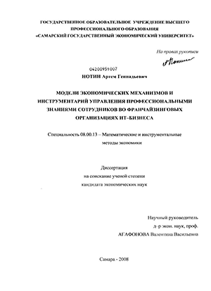 Предметом исследования являются математические модели экономических механизмов управления уровнем квалификации сотрудников, совершенствующие использование профессиональных знаний во франчайзинговых организациях.