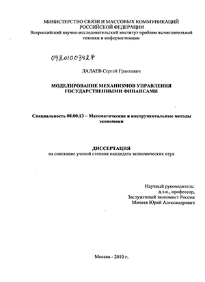 Целью диссертационного исследования является разработка методики моделирования механизмов управления государственными финансами на единой базе экономико-математического моделирования.
