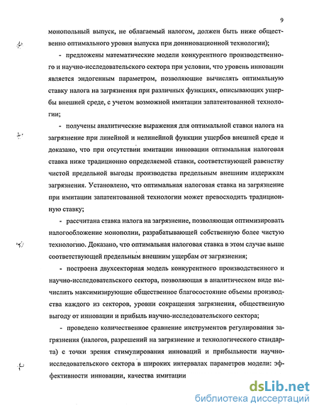 внешней среде, издержек сокращения выбросов и др. Установлено, что налоги на загрязнение имеют существенное преимущество перед другими инструментами регулирования только в случае крупных инноваций, а имитация не предполагает с необходимостью значительную неэффективность рынка инноваций.