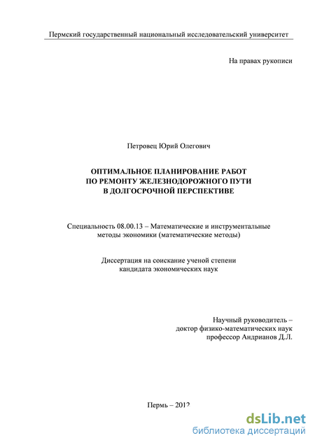 Глава 2. Математический инструментарий для формирования оптимальных планов работ по ремонту железнодорожного пути 41