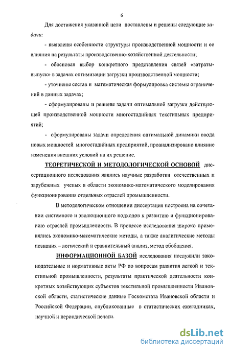 Актуальность и многогранность проблем, стоящих перед текстильной отраслью промышленности РФ, недостаточная разработанность проблемы в литературе определили выбор темы научного исследования, его цель и задачи.