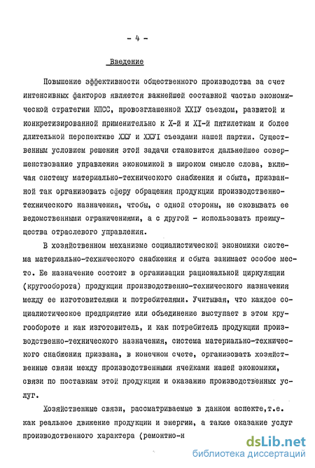 Повышение эффективности общественного производства за счет интенсивных факторов является важнейшей составной частью экономической стратегии КПСС, провозглашенной ХХІУ съездом, развитой и конкретизированной применительно к 1-й и ХІ-й пятилеткам и более длительной перспективе ХХУ и ХХУІ съездами нашей партии. Существенным условием решения этой задачи становится дальнейшее совершенствование управления экономикой в широком смысле слова, включая систему материально-технического снабжения и сбыта, призванной так организовать сферу обращения продукции производственно-технического назначения, чтобы, с одной стороны, не сковывать ее ведомственными ограничениями, а с другой - использовать преимущества отраслевого управления.