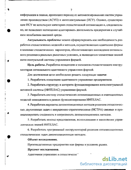 информации в знания, произошел переход от автоматизированных систем управления производством (АСУП) к интеллектуальным (ИСУ). Однако, существующие ИСУ не используют категории стохастической оптимизации и, следовательно, не позволяют полноценно адаптировать деятельность предприятия к случайным колебаниям внешней среды.