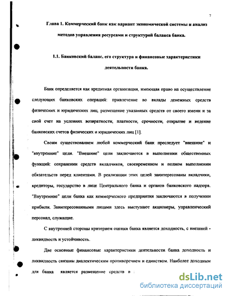 Глава 1. Коммерческий банк как вариант экономической системы и анализ методов управления ресурсами банка и структурой его баланса . '