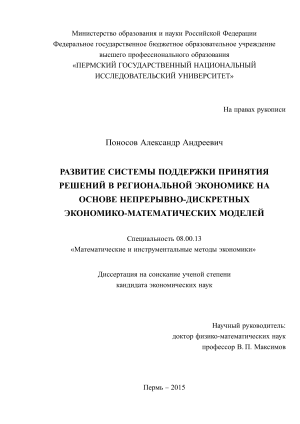 Цель и задачи исследования. Целью диссертации является повышение точности моделирования и управления экономикой региона, на основе развития системы поддержки принятия решений в региональной экономической системе с использованием непрерывно-дискретных экономико-математических моделей.