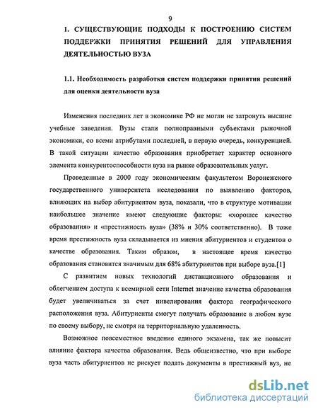 1.1. Необходимость разработки систем поддержки принятия решений для оценки деятельности вуза 9