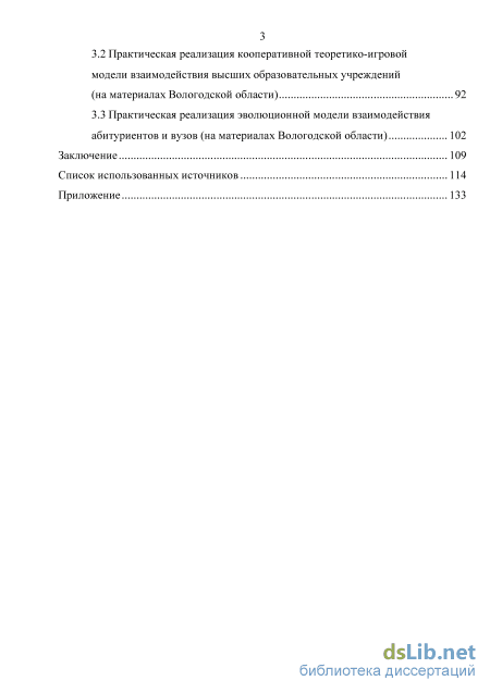 В рамках настоящего диссертационного исследования разработана система экономико-математических моделей и методов анализа развития высшего образования в регионе, позволяющих определить и дать количественную оценку закономерностям взаимодействия основных субъектов рассматриваемой сферы (абитуриентов и вузов).