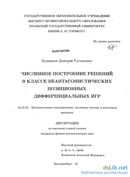 Объект исследования и актуальность темы. Объектом исследования диссертации являются численные алгоритмы построения решений в классе неантагонистических позиционных дифференциальных игр двух лиц. При этом рассматриваются два основных типа решений — равновесные решения по Нэшу и решения по Штакельбергу.