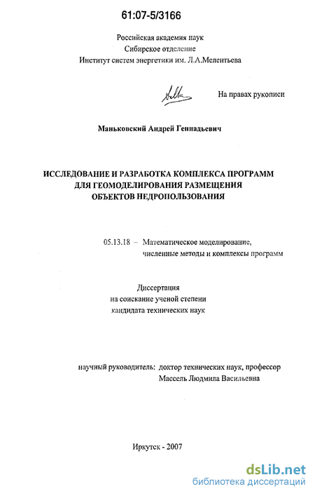 Апробация работы. Результаты работы докладывались на XXXI и XXXII конференциях молодых ученых ИСЭМ СО РАН, г. Иркутск, в 2001, 2002 гг.; Всероссийской конференции «Математические и информационные технологии в энергетике, экономике, экологии», г. Иркутск, 2003 г.; Научно-практической конференции «Основные направления совершенствования деятельности организаций МПР России по формированию и использованию государственных информационных ресурсов в области геологии и недропользования», г. Москва, 2003 г.; III и IV школах-семинарах «Математическое моделирование и информационные технологии: управление, искусственный интеллект, прикладное программное обеспечение, технологии программирования», г. Иркутск, 2003 и 2004 гг.; Всероссийской конференции «Информационные и математические технологии», г. Иркутск, 2004 г.; на «Круглом столе» Совета Федерации «Стратегические природные ресурсы: проекты и схемы освоения» Третьего Байкальского экономического форума, г. Иркутск, 2004 г; а также докладывались и обсуждались на семинарах и секции Ученого Совета ИСЭМ СО РАН и на заседании Ученого Совета ВостСибНИИГГиМС.