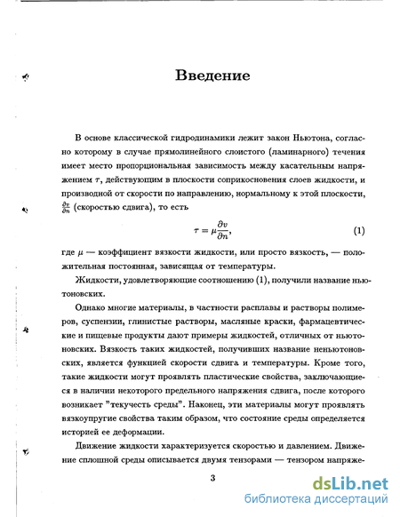 ний и тензором скоростей деформаций. Ньютоновскими называют жидкости, для которых тензор напряжений линейно зависит от компонент тензора скоростей деформаций.