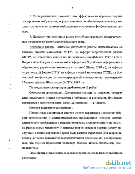 Апробация работы. Основные результаты работы докладывались на кафедре высшей математики МГГУ,. на кафедре теоретической физики МГПУ, на Всесоюзном совещании по люминесценции(Минск, 1977 г.), на II Всероссийской научно-технической конференции "Проблемы информатики в образовании, управлении, экономике и технике" (Пенза, 2002 г.), на кафедре теоретической физики СГПУ, на кафедре высшей математики ССХИ, на Всесоюзной конференции по тонкоструктурной спектроскопии, посвященной 25-летию эффекта Шпольского (МГПУ, 1987 г.).