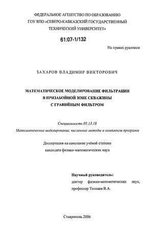 Апробация работы. По мере получения основных результатов, а также в завершённом виде диссертация докладывалась на научных семинарах в Северо-Кавказском государственном техническом университете на кафедре «Прикладная математика» (научный руководитель - д.ф.-м.н., профессор Толпаев В.А.).