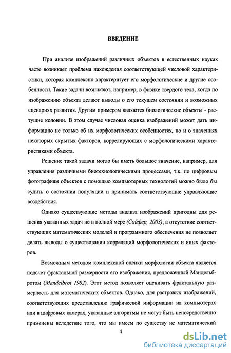 Возможным методом комплексной оценки морфологии объекта является подсчет фрактальной размерности его изображения, предложенный Ман-дельбротом Этот метод позволяет оценивать фрактальную размерность для математических объектов Однако для растровых изображений, соответствующих представлению графической информации на компьютерах или в цифровых камерах, указанные алгоритмы не могут быть непосредственно применены вследствие того, что в данном случае по существу имеет место не математический объект, а его приближение на дискретной сетке При этом возникает необходимость в адаптации существующих алгоритмов вычисления фрактальной размерности для растровых изображений